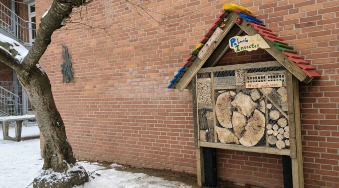 Am nächsten Tag haben wir die Steine in der Nähe der Schule verteilt.